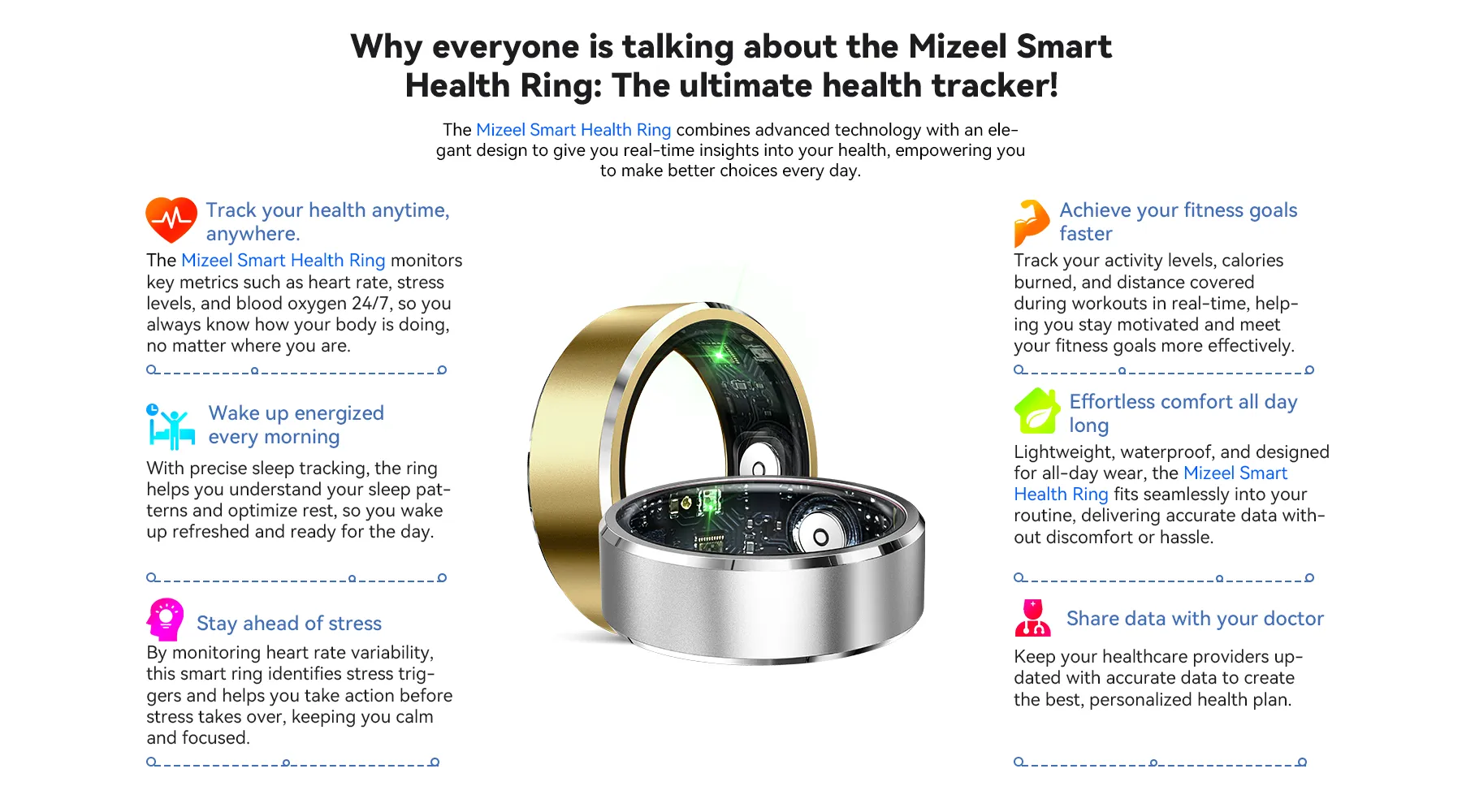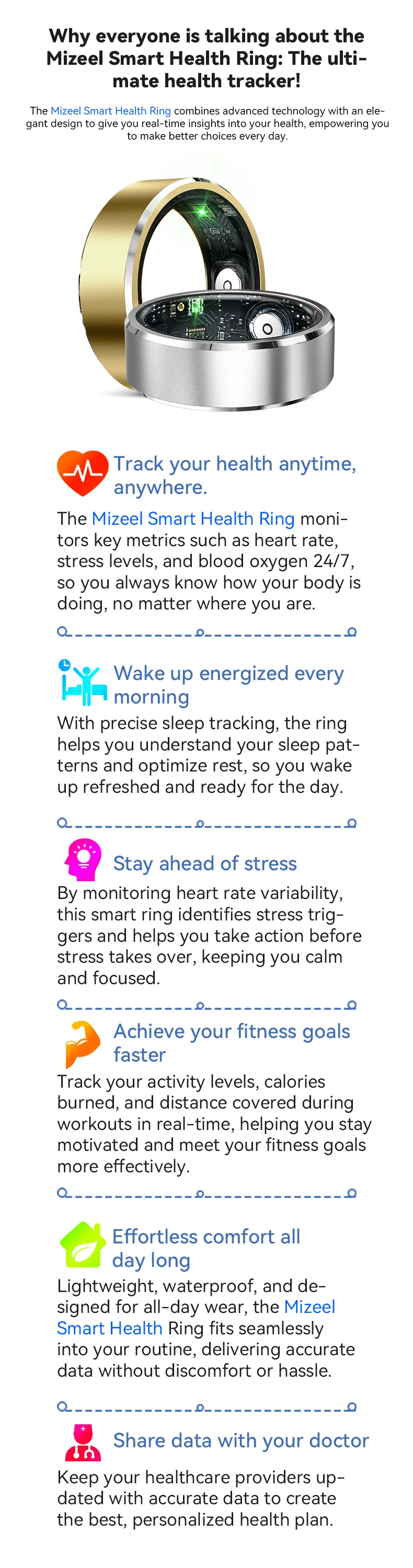 Mizeel Smart Ring: All-weather health monitoring, professional sports assistant, life-efficient housekeeper, the perfect combination of fashion and technology.