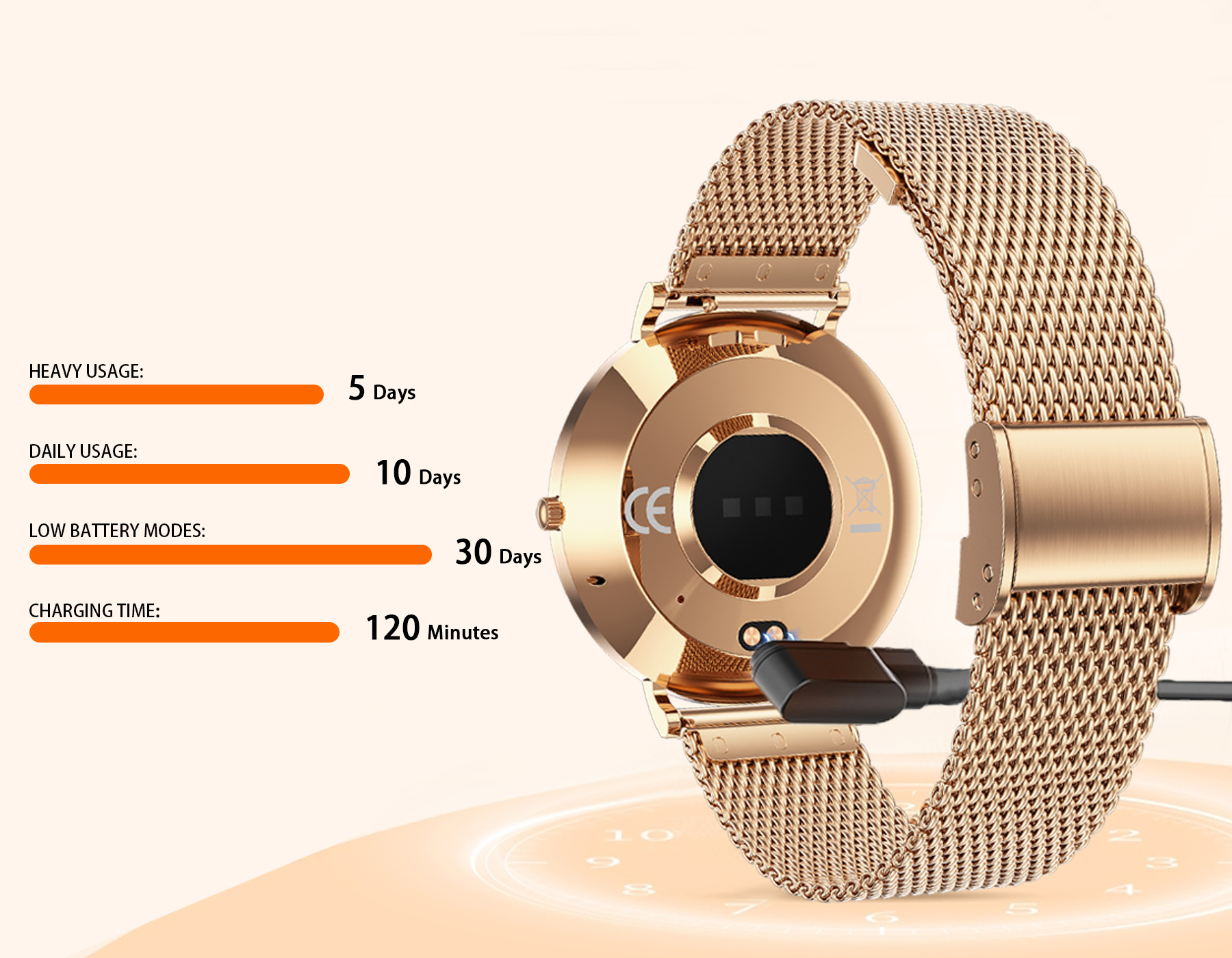 - Extended Battery Life & Fast Charging: Enjoy up to 3-5 days of use on a single charge. Just 15 minutes of magnetic fast charging provides a full day of power.