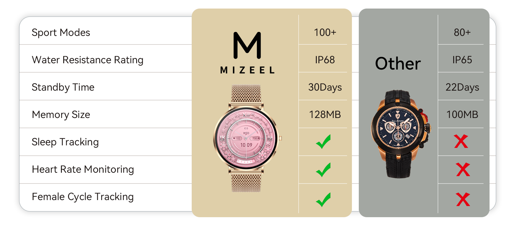The Mizeel Smart Watch was her answer. It is an elegant companion with an ultra-slim design and comprehensive health monitoring. The product was built so she would never have to compromise again.